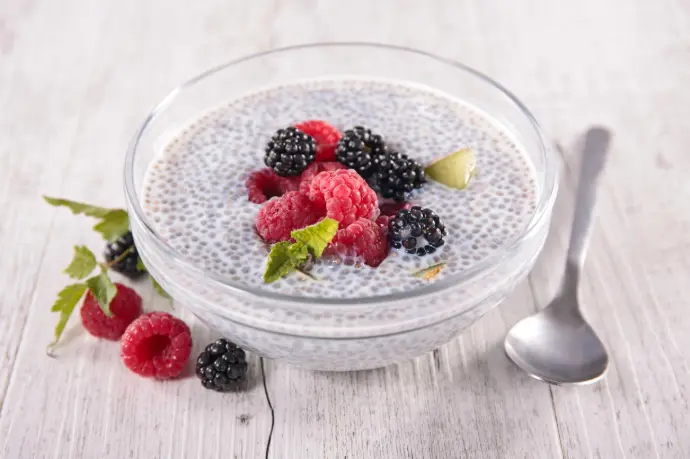 - Incorporer les graines de chia et laisser reposer 5 minutes, en mélangeant de temps en temps pour éviter les grumeaux.