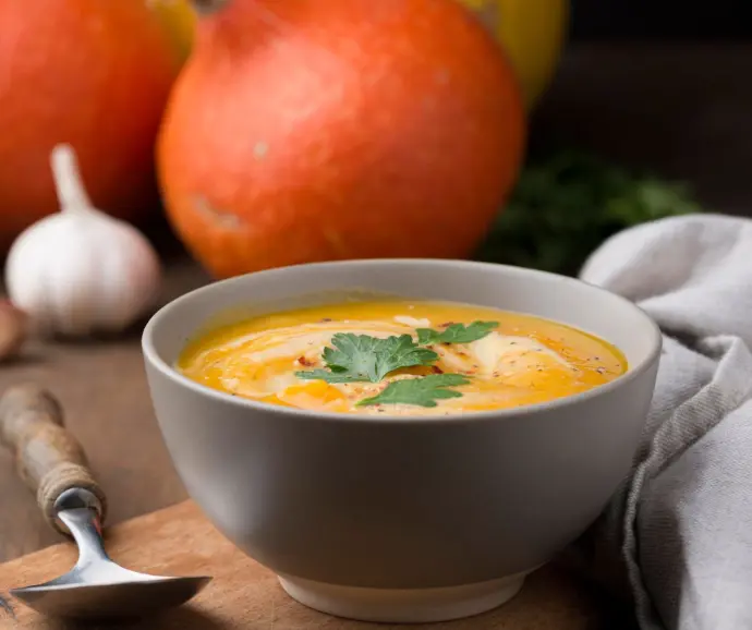 - Passez le tout au blender et servez avec des feuilles de coriandre fraîche hachées et une touche de Pianto CLASSIC.