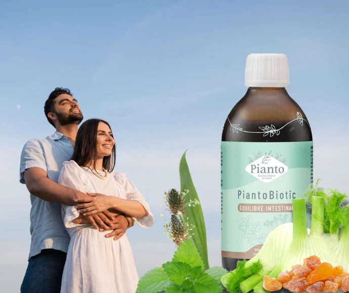 PiantoBiotic Équilibre intestinal est un concentré fermenté par la levure lysée, enrichi de fenouil, mélisse, boswellia et plantain, miels & vitamine B2 qui contribue au maintien de muqueuses normales et à protéger les cellules contre le stress oxydatif.